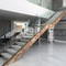 Escaleras fabricada de acero inoxidable mezclada con peldaños de madera y barandillas de cristales .
