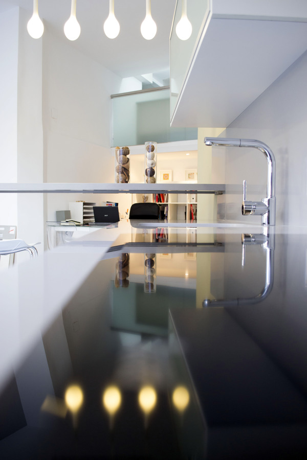 Creamos un espacio que nos representara ante nuestros clientes. Por un lado, nuestra formación en arquitectura queda reflejada en la distribución diáfana de espacios y limpieza de lineas. Por otro lado, nuestra experiencia en reformas estaba representada en la construcción de cuatro ambientes distintos conviviendo en un mismo espacio: hall, cocina, baño y despacho. La apuesta de color y el interiorismo también tenían su espacio reservado. Un despacho de reformas que es a su vez un ejemplo de nuestro propio trabajo.