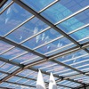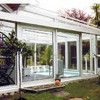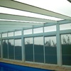 Cubierta descendente, a 1 agua, se realiza en varias opciones sistema universal de policarbonato de 10 mm de total estanqueidad y máxima garantía general electric • canalón y bajantes + 2 cuchillos laterales • .La estructura básica adjuntamos croquis de estructura fabricada totalmente en aluminio con viga especial de 178x100 mm ( ver ficha adjunta) lacada al horno y con tapetas para tapar toda la tornilleria de acero inox. De rosca métrica B) paramentos verticales 1ª) laterales fijos con divisorios verticales y cuchillos y/o 2º) correderas de alta gama sunroom s.60 lacadas 8017 y acristaladas en : a) policarbonato celular de 16 mm. B/hielo doble acristalamiento aislaglas 4//cámara 10 //4