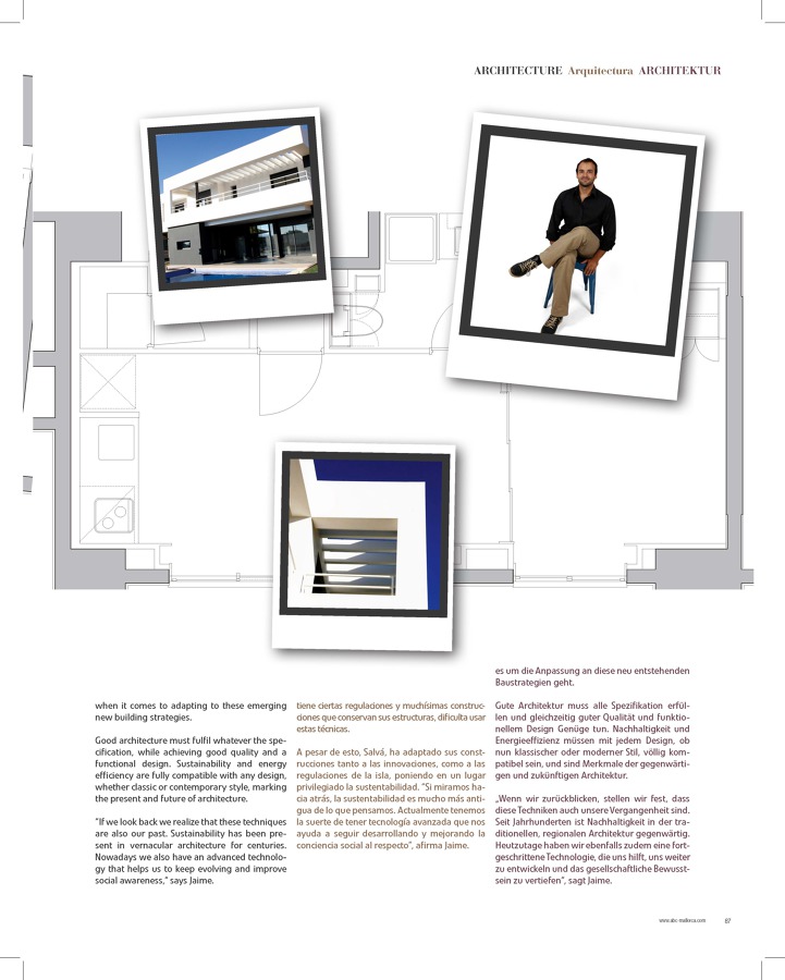 Estudio de arquitectura en palma de mallorca liderado por el arquitecto jaime salvá pascual, cuya actividad principal se centra en el desarrollo integral de proyectos de arquitectura. Nuestro método de trabajo parte del estudio profundo del programa de necesidades del cliente. Www.salvarq.com Http://blog.habitissimo.es/author/jsalva/ Ideamos, desarrollamos y ejecutamos todo tipo de encargos arquitectónicos, principalmente proyectos integrales de arquitectura. • proyectos de obra nueva • proyectos de interiorismo y decoración • reformas, rehabilitaciones y ampliaciones • asesoramiento urbanístico y planeamiento Dominamos todas las fases de un proyecto arquitectónico, desde la idea inicial, hasta el interiorismo y mobiliario final, pasando por el desarrollo y redacción de los proyectos básico y de ejecución, el cálculo de estructuras, las instalaciones, el estudio y coordinación de seguridad y salud, y la dirección de obra, obteniendo con ello un mejor resultado para el cliente, ya que todas estas fases del proyecto quedan conectadas y mantienen un mismo concepto. También realizamos: • legalizaciones • proyectos de licencias de actividades • proyectos de demoliciones • cédulas de habitabilidad • certificados energéticos • informes, peritajes y dictámenes de toda clase (Miembro de la agrupación de arquitectos expertos peritos y forenses judiciales, aaepf) • valoraciones inmobiliarias (Tasador en empresas del sector) • ITEs (Inspección técnica de edificios) • proyectos de reparcelación • cálculo de estructuras • levantamiento de planos de estados actuales • 2D. 3D, renders, etc.