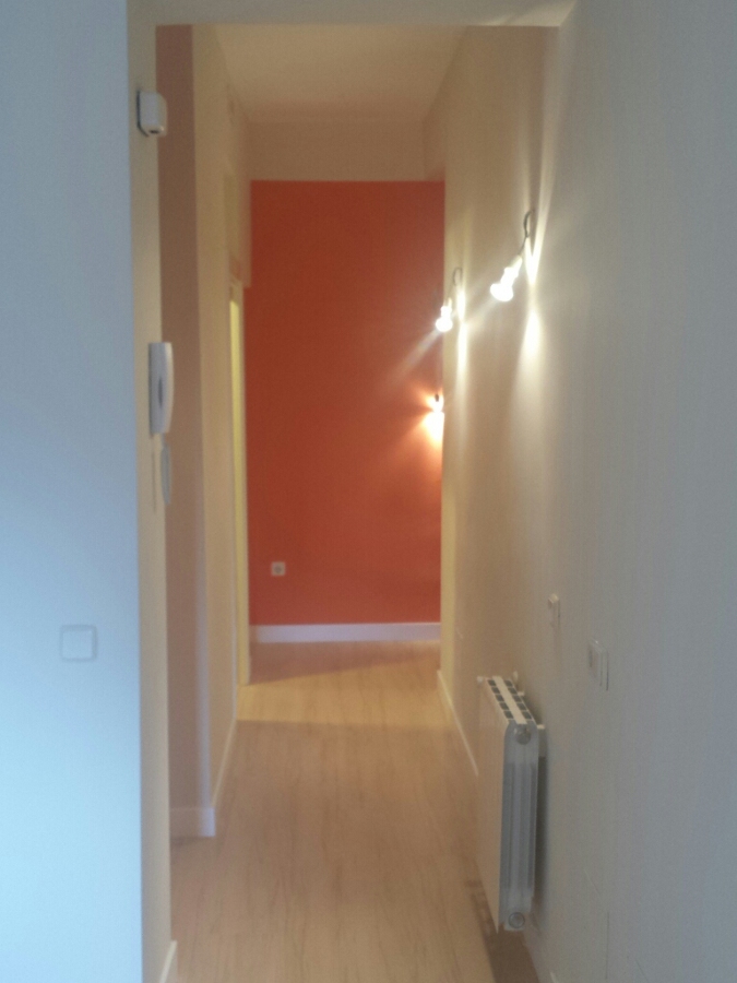 Reforma integral de una vivienda muy deteriorada,hicimos un reconocimiento de las zonas de muros de carga para asi poder hacer planos del reparto nuebo de habitaciones,ampliando la cocina y sacando un cuarto de baño mas,en la division del salon a la habitacion de matrimonio se monto una cristalera que le daba un toque moderno y una luminosidad natural muy agradable,las puertas fueron la inmensa mayoria casonetos con hojas de madera maciza lacadas en blanco con grecas y asi de esta forma ahorrar espacio al igual que al hacer hornacinas para los radiadores,se alicato y solo con plaqueta ceramica de 1ª calidad tipo rustico al gusto de el cliente,los baños se montaron con platos de ducha antideslizantes,mampara,muebles y sanitarios.La electricidad se hizo al completo tambien,tirando una nueba acometida desde el cuarto de contadores,todo el hilo cumpliendo la normativa,tambien se le montaron las luminarias de la vivienda,se aliso toda la casa y se le dio un toque moderno con un color naranja y blanco muy bonito.
