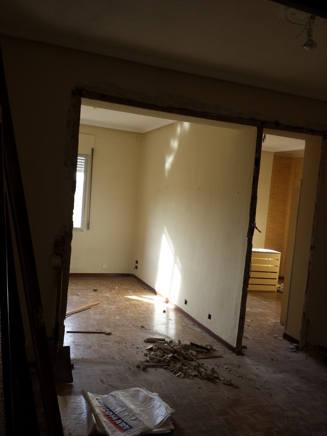 Reforma integral de una vivienda muy deteriorada,hicimos un reconocimiento de las zonas de muros de carga para asi poder hacer planos del reparto nuebo de habitaciones,ampliando la cocina y sacando un cuarto de baño mas,en la division del salon a la habitacion de matrimonio se monto una cristalera que le daba un toque moderno y una luminosidad natural muy agradable,las puertas fueron la inmensa mayoria casonetos con hojas de madera maciza lacadas en blanco con grecas y asi de esta forma ahorrar espacio al igual que al hacer hornacinas para los radiadores,se alicato y solo con plaqueta ceramica de 1ª calidad tipo rustico al gusto de el cliente,los baños se montaron con platos de ducha antideslizantes,mampara,muebles y sanitarios.La electricidad se hizo al completo tambien,tirando una nueba acometida desde el cuarto de contadores,todo el hilo cumpliendo la normativa,tambien se le montaron las luminarias de la vivienda,se aliso toda la casa y se le dio un toque moderno con un color naranja y blanco muy bonito.