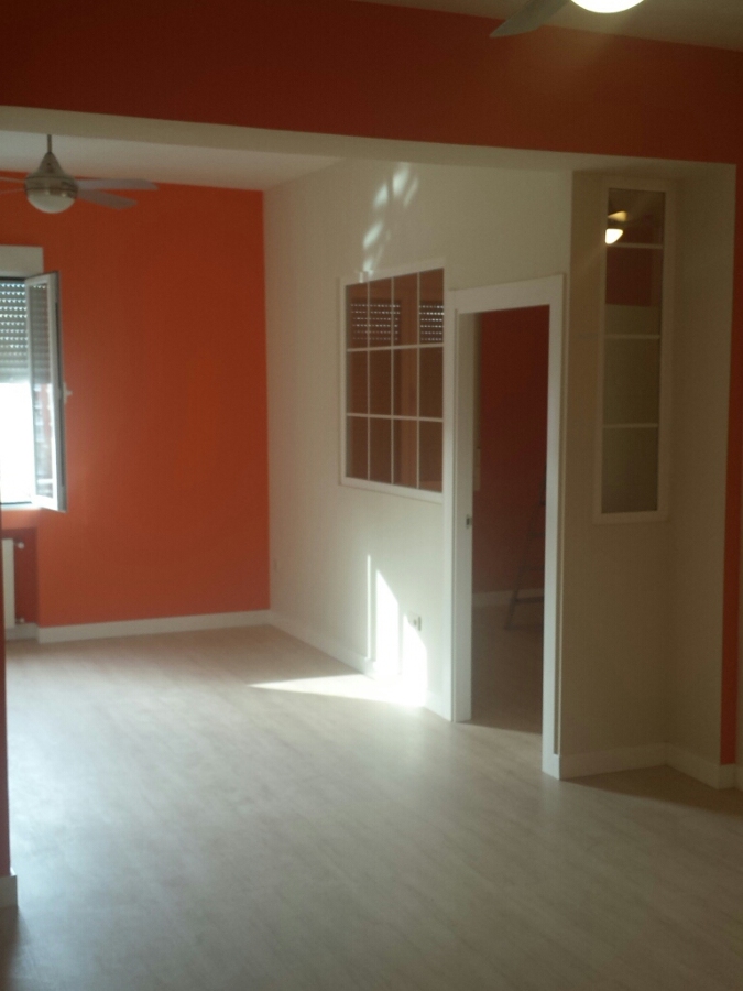 Reforma integral de una vivienda muy deteriorada,hicimos un reconocimiento de las zonas de muros de carga para asi poder hacer planos del reparto nuebo de habitaciones,ampliando la cocina y sacando un cuarto de baño mas,en la division del salon a la habitacion de matrimonio se monto una cristalera que le daba un toque moderno y una luminosidad natural muy agradable,las puertas fueron la inmensa mayoria casonetos con hojas de madera maciza lacadas en blanco con grecas y asi de esta forma ahorrar espacio al igual que al hacer hornacinas para los radiadores,se alicato y solo con plaqueta ceramica de 1ª calidad tipo rustico al gusto de el cliente,los baños se montaron con platos de ducha antideslizantes,mampara,muebles y sanitarios.La electricidad se hizo al completo tambien,tirando una nueba acometida desde el cuarto de contadores,todo el hilo cumpliendo la normativa,tambien se le montaron las luminarias de la vivienda,se aliso toda la casa y se le dio un toque moderno con un color naranja y blanco muy bonito.