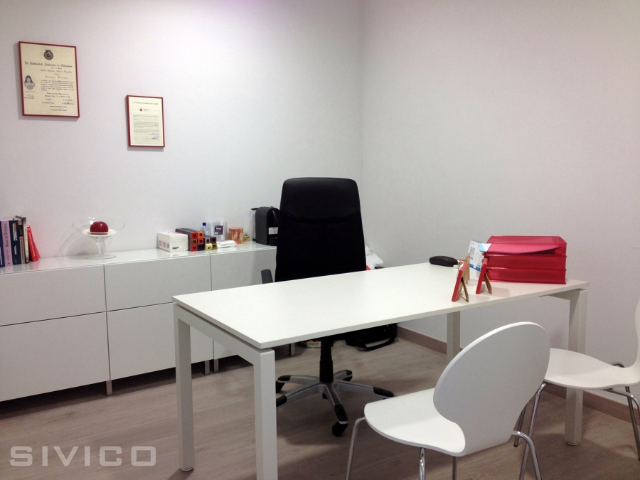 Diseño, proyecto y reforma de un local de 140 m2 destinado a clínica dental. Incluimos: recepción, sala de espera, distribuidor, gabinetes, despachos, sala de ortopantomografía, sala de esterilización y aseos. Se emplearon tabiques de cristal, suelos de parquet, tragaluces, climatización por conductos, iluminación con leds, ... Un proyecto completo de llave en mano.