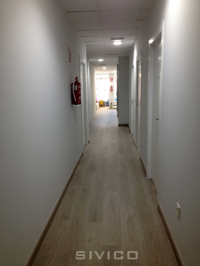 Diseño, proyecto y reforma de un local de 140 m2 destinado a clínica dental. Incluimos: recepción, sala de espera, distribuidor, gabinetes, despachos, sala de ortopantomografía, sala de esterilización y aseos. Se emplearon tabiques de cristal, suelos de parquet, tragaluces, climatización por conductos, iluminación con leds, ... Un proyecto completo de llave en mano.