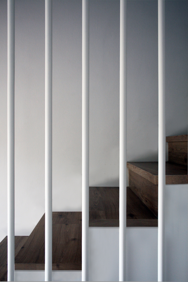 Briefing: El encargo responde a la necesidad de reformar una vivienda unifamiliar con 20 años de antigüedad, para adaptarla al estilo de vida de los nuevos propietarios, una joven pareja con dos niños pequeños. El proyecto requería una actualización en el diseño de acabados, fríos y ya obsoletos, redistribución de espacios generando una interrelación entre las zonas destinadas a salón, comedor y cocina, incorporación de barandilla en escalera, un incremento en la entrada de luz natural y aumento del espacio de almacenaje. Propuesta: Generar espacios permeables entre si, para conseguir una fluidez y comunicación visual, y al mismo tiempo, unificar usos que enfaticen dicha interrelación. Desarrollo: se derribaron tabiques e incorporaron materiales cálidos como la madera en distintas tonalidades ( sustituyendo al antiguo mármol ), para pavimento y acabados de muebles de cocina y almacenaje. De esta manera, se generó un espacio unificado tanto visual como funcionalmente, donde los límites entre las zonas de cocina, comedor y salón aparecen desdibujados; todo está conectado a través de un mismo alzado, donde se incorpora la cocina, un gran bloque de almacenaje, volumen de chimenea, y por último, el jardín. Se diseñó una barandilla a prueba de niños que no invadiera el espacio visualmente y sirviera como tamiz para la incidencia de luz natural. Cliente: pareja con dos niños pequeños Tipología: vivienda unifamiliar adosada Superficie: 120m2 Ubicación: las matas - madrid Año: 2012