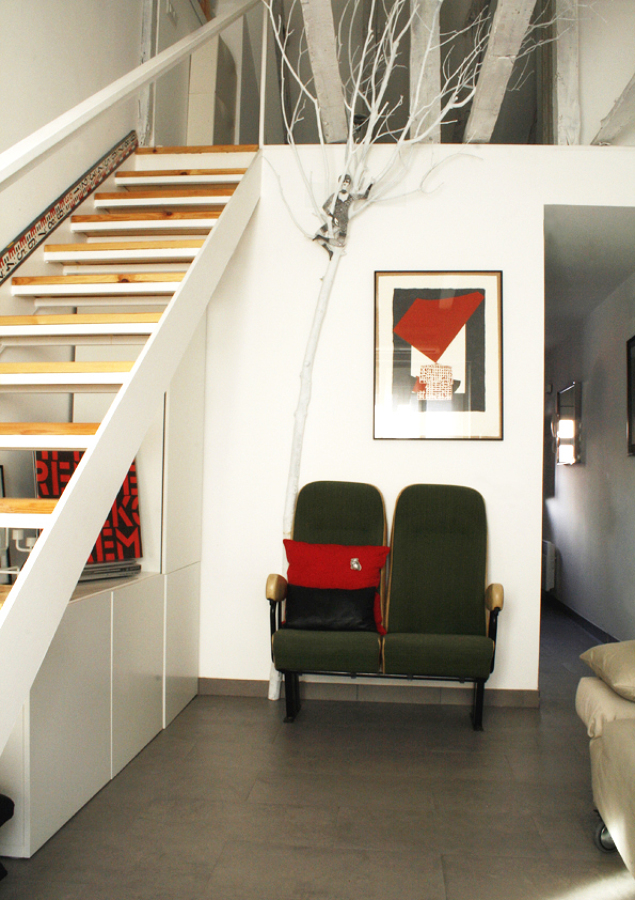 Briefing:: reforma integral de pequeño apartamento en un edificio histórico del centro de madrid que se encontraba en estado de ruina, para ser destinado a primera vivienda de un diseñador. Propuesta: Zonificar atendiendo a los distintos usos para conseguir que a pesar de los pocos metros útiles, la vivienda parezca más grande generando espacios independientes pero versátiles. Utilizando materiales resistentes y buscando soluciones que potencien la luz y la ventilación cruzada. Desarrollo: retirando el falso techo se deja a la vista la bajocubierta, creando así un espacio de doble altura abuhardillado a dos aguas que proporciona bastante amplitud y deja a la vista las vigas de madera tan características de esta tipología de viviendas. A su vez, se aprovecha este espacio para hacer un altillo en el que se ubica el dormitorio. Se procede a una redistribución espacial, con nuevas instalaciones, refuerzo de estructura y forjado, así como aislamiento térmico y acústico de la bajocubierta. El resultado es una vivienda a dos niveles en la que todos los espacios quedan intercomunicados siendo al mismo tiempo independientes entre sí, sin necesidad de recurrir a la instalación de puertas. Cliente: joven soltero Tipología: apartamento Superficie: 25m2 Ubicación: madrid centro Año: 2006