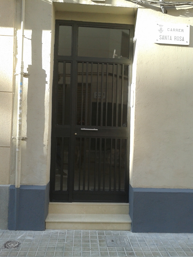 Rehabilitación integral del hall de la entrada, colocación de mármol en crema marfil, sustitución del ramal de enlace de agua general y arqueta, restauración de la puerta de hierro de la entrada y pintado.
