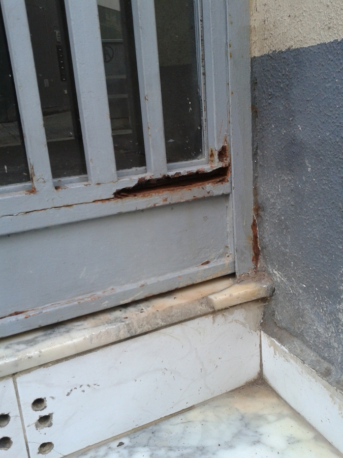 Rehabilitación integral del hall de la entrada, colocación de mármol en crema marfil, sustitución del ramal de enlace de agua general y arqueta, restauración de la puerta de hierro de la entrada y pintado.
