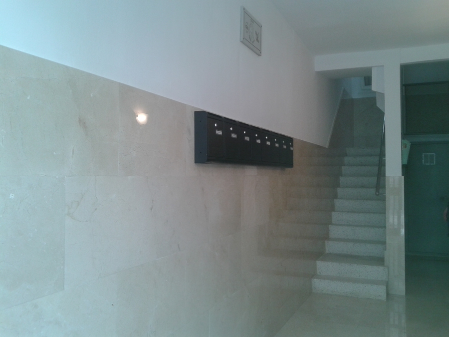 Rehabilitación integral del hall de la entrada, colocación de mármol en crema marfil, sustitución del ramal de enlace de agua general y arqueta, restauración de la puerta de hierro de la entrada y pintado.