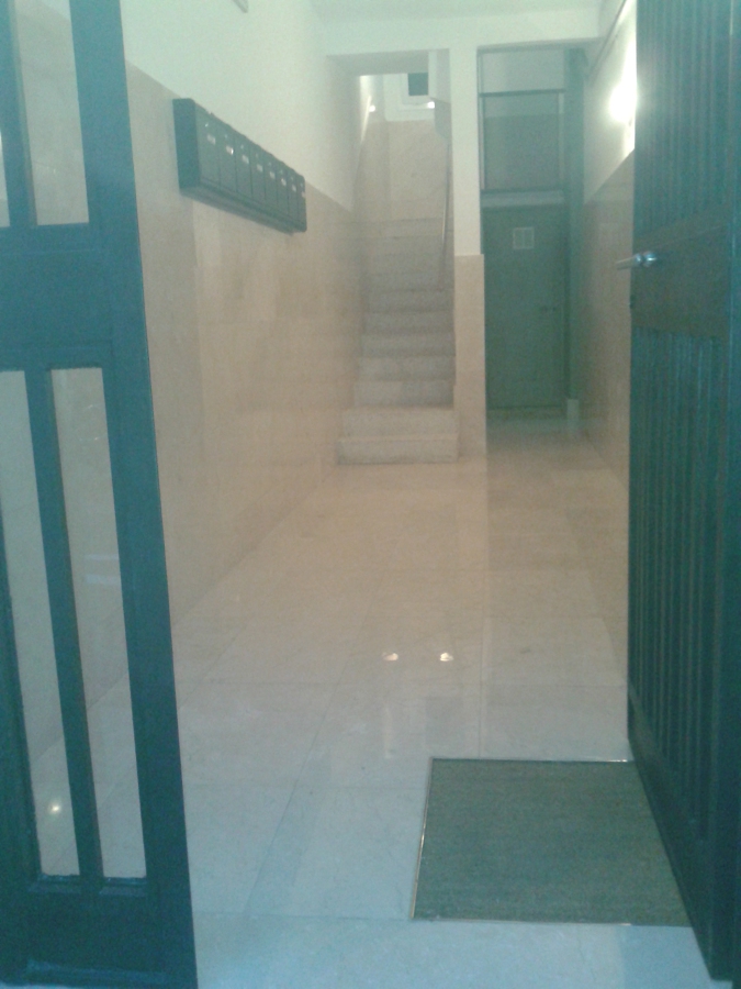 Rehabilitación integral del hall de la entrada, colocación de mármol en crema marfil, sustitución del ramal de enlace de agua general y arqueta, restauración de la puerta de hierro de la entrada y pintado.