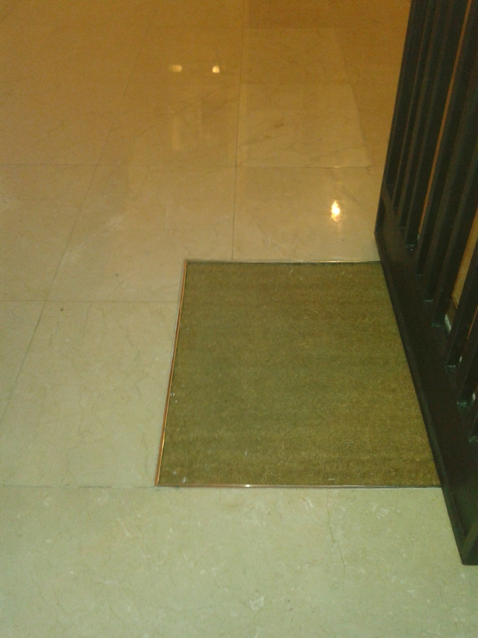 Rehabilitación integral del hall de la entrada, colocación de mármol en crema marfil, sustitución del ramal de enlace de agua general y arqueta, restauración de la puerta de hierro de la entrada y pintado.