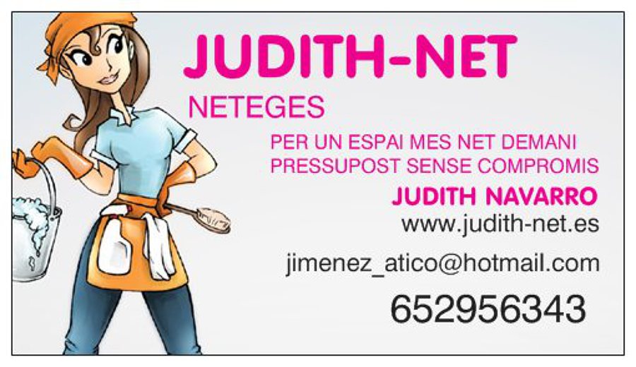 Judith-nete especialitat en neteja de comunitats ,locals ,despatxos,tambe netegem persianes i vidres,8 anys de experiencia ens avala i sobre tot donem confiança als nostres cliens de una feina ben feta.Demani pressupost sense compromis lo important es tenir una bona oferta i servei