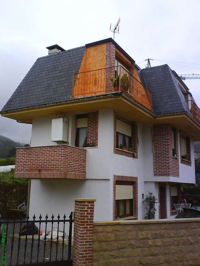 Chalet que en un principio tenía un liso bastante malo,optamos por darle la idea al cliente de encerarlo y hacerle una pátina en rojo sobre una superficie rústica y muy decorativa especialidad de nuestros profesionales ,utilizando material de rústico beissier exteriores y ceras badi a esponja en color rojo y ocres mezclados a mano.Alero con revestimiento sikkens de gran calidad y barandillas y rejas exteriores efecto dorado con forja negra de la marca procolor.