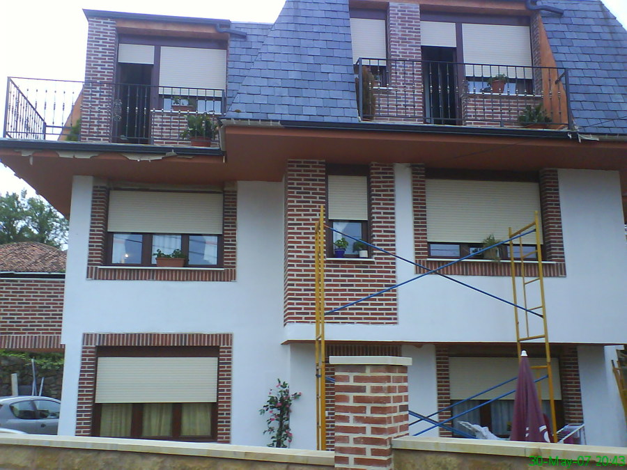 Chalet que en un principio tenía un liso bastante malo,optamos por darle la idea al cliente de encerarlo y hacerle una pátina en rojo sobre una superficie rústica y muy decorativa especialidad de nuestros profesionales ,utilizando material de rústico beissier exteriores y ceras badi a esponja en color rojo y ocres mezclados a mano.Alero con revestimiento sikkens de gran calidad y barandillas y rejas exteriores efecto dorado con forja negra de la marca procolor.