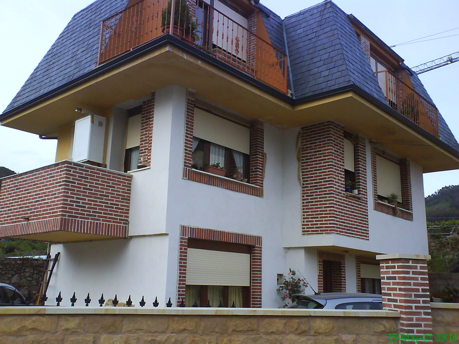 Chalet que en un principio tenía un liso bastante malo,optamos por darle la idea al cliente de encerarlo y hacerle una pátina en rojo sobre una superficie rústica y muy decorativa especialidad de nuestros profesionales ,utilizando material de rústico beissier exteriores y ceras badi a esponja en color rojo y ocres mezclados a mano.Alero con revestimiento sikkens de gran calidad y barandillas y rejas exteriores efecto dorado con forja negra de la marca procolor.