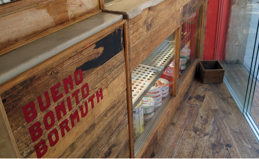 Restaurante en el barrio del born, barcelona, llamado bormuth. Construido en los bajos de una finca modernista de las más bellas y singulares del barrio, los promotores proponen una simbiosis entre la comida a precios populares, el bien estar dentro del espacio y la calidad de sus productos. Así pues siguiendo estos requisitos para la comida, se busca transmitir estos criterios al lenguaje corporativo de su arquitectura e interiorismo. El uso de materiales añejos, antiguos y verdaderos es uno de los principales motivos de su estética, para conseguir atmósferas acogedoras, singulares y cálidas. Dado que el espacio es de grandes dimensiones, se opta por trocearlo y crear pequeños espacios, lugares de escala doméstica donde cada uno de sus clientes pueda encontrar su rincón para hablar con sus amigos y degustar la buena comida que se ofrece en su carta. En cuanto a la reforma del interior, se quiere transmitir la misma idea que transmite la fachada de la finca; el paso de los años, la arquitectura consolidada (huyendo de todo lo frio, racional y repetido que ha inundado el diseño barcelonés de las últimas décadas). Antiguamente ya había un restaurante, aunque la nueva normativa obliga a tener que derribar casi todo; aun así, se mantiene la filosofía de aprovechar el máximo de los residuos, hacer una política de reciclaje extrema. Las antiguas carpinterías, que por normativa han de ser cambiadas de sitio, son manipuladas y reaprovechadas. Puertas de cristal, marcos de hierro, estructuras metálicas… se podría decir que todo y haber un proyecto, este no es rígido, ya que los elementos constructivos son los que son (reciclados), así que el proyecto se adapta a los materiales y no al revés.El resto de materiales son encontrados en casas de material de derribo, tales como la tarima de madera, las barras de mármol, las mesas…